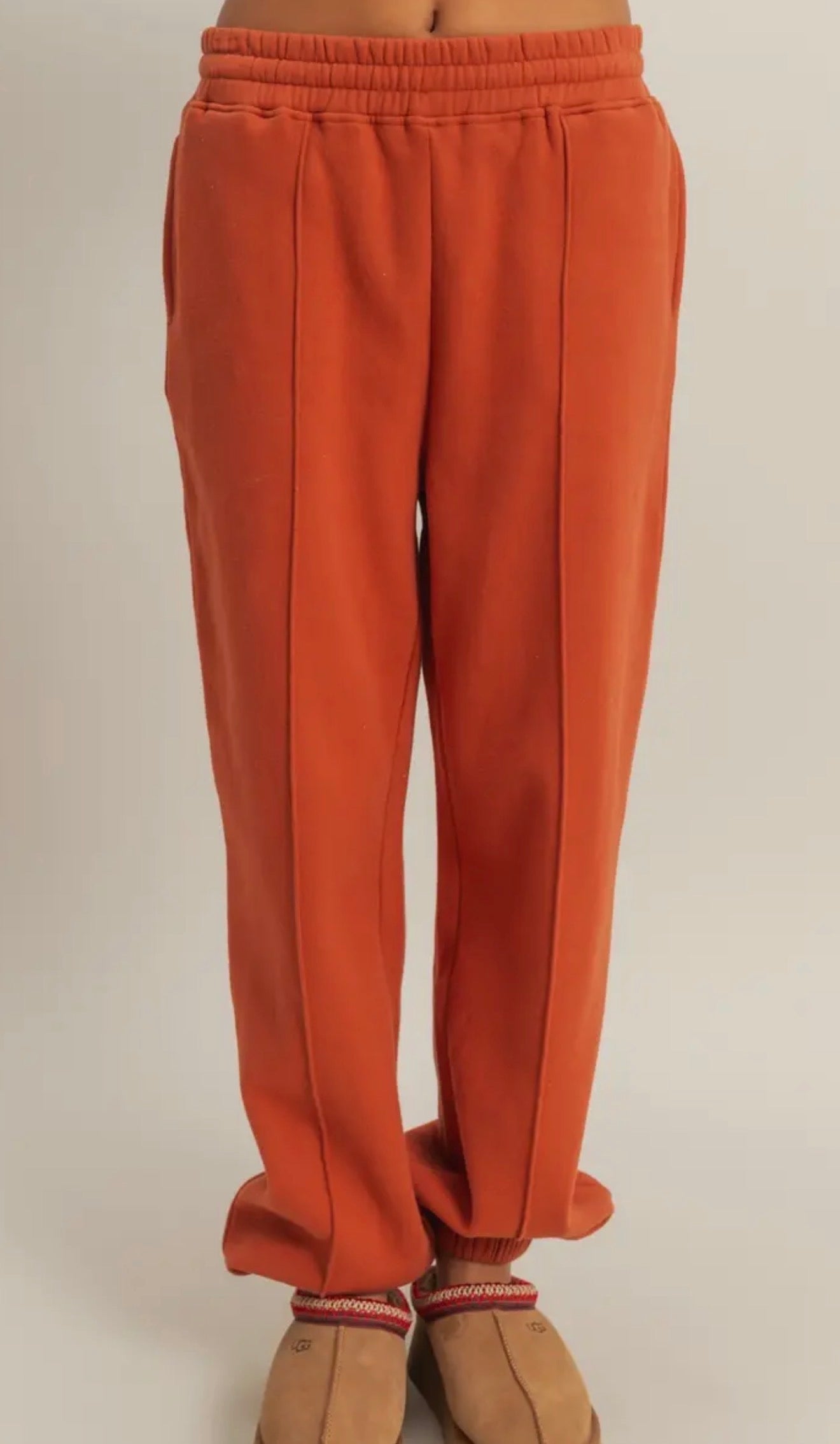 Burnt Orange High-Waisted Pintuck Sweatpants