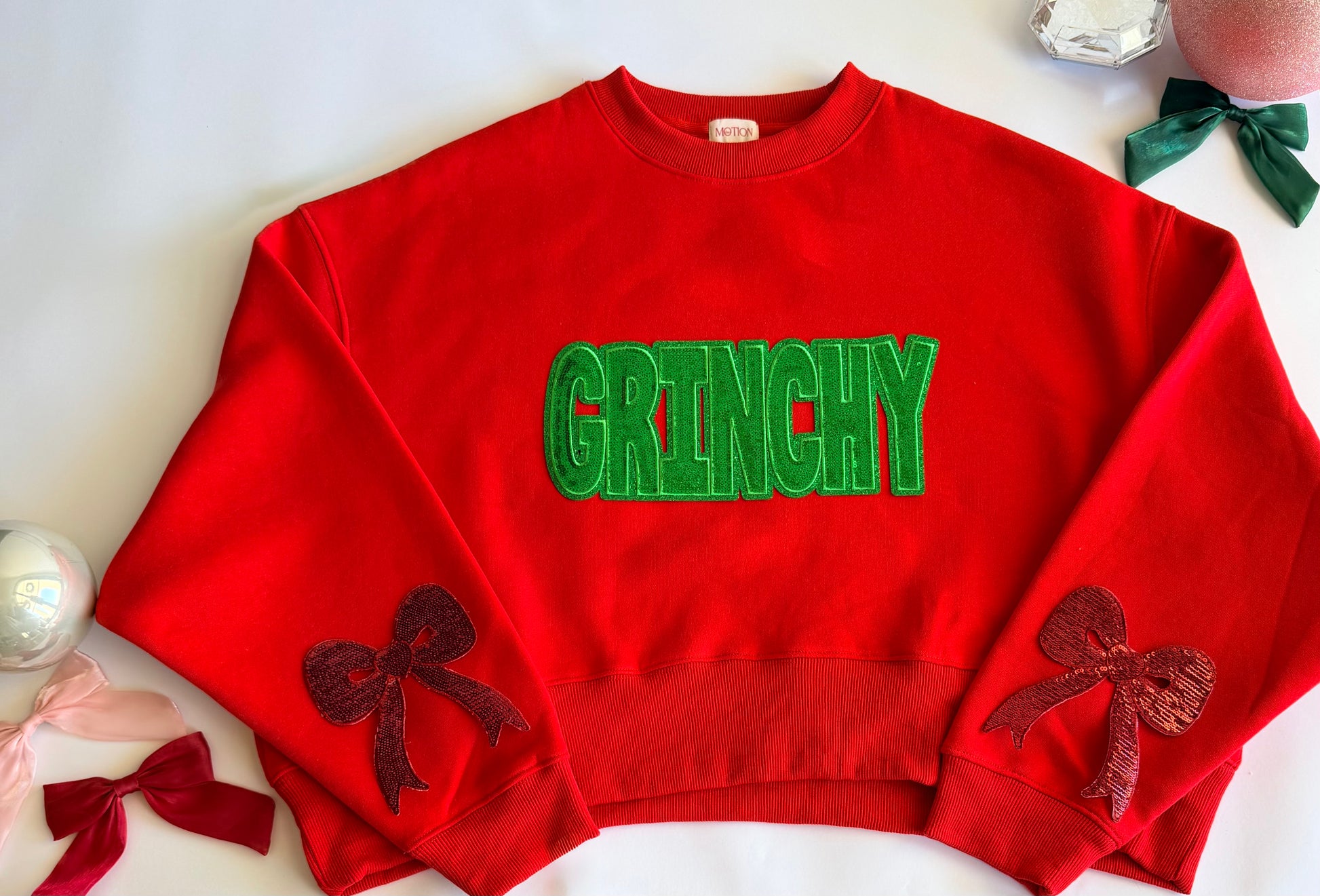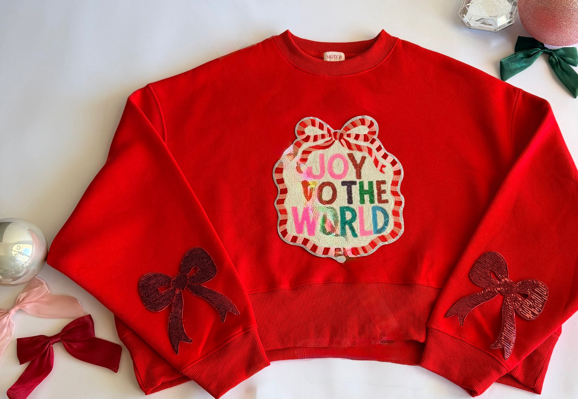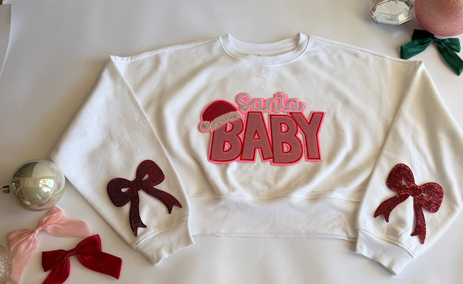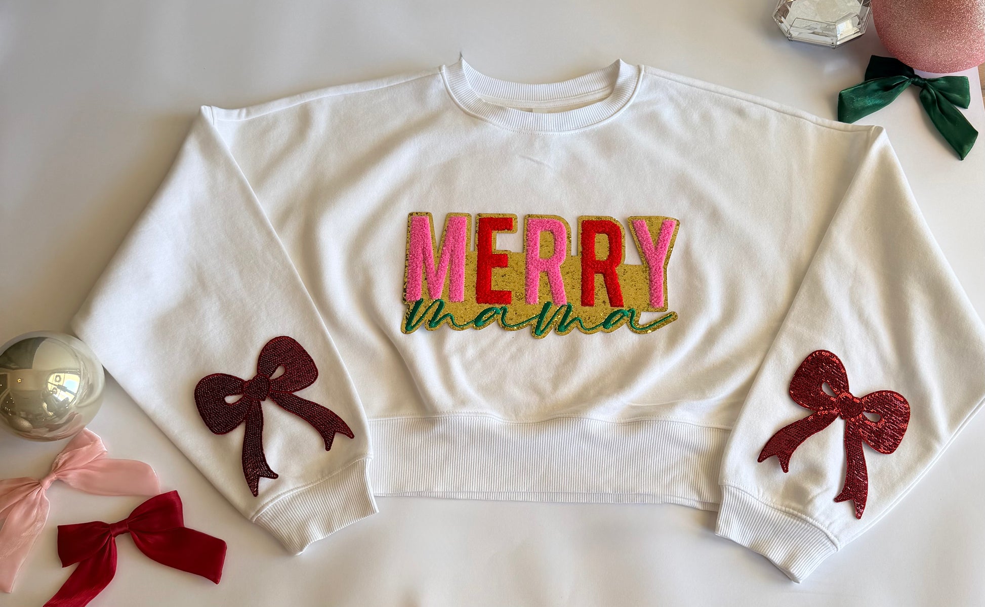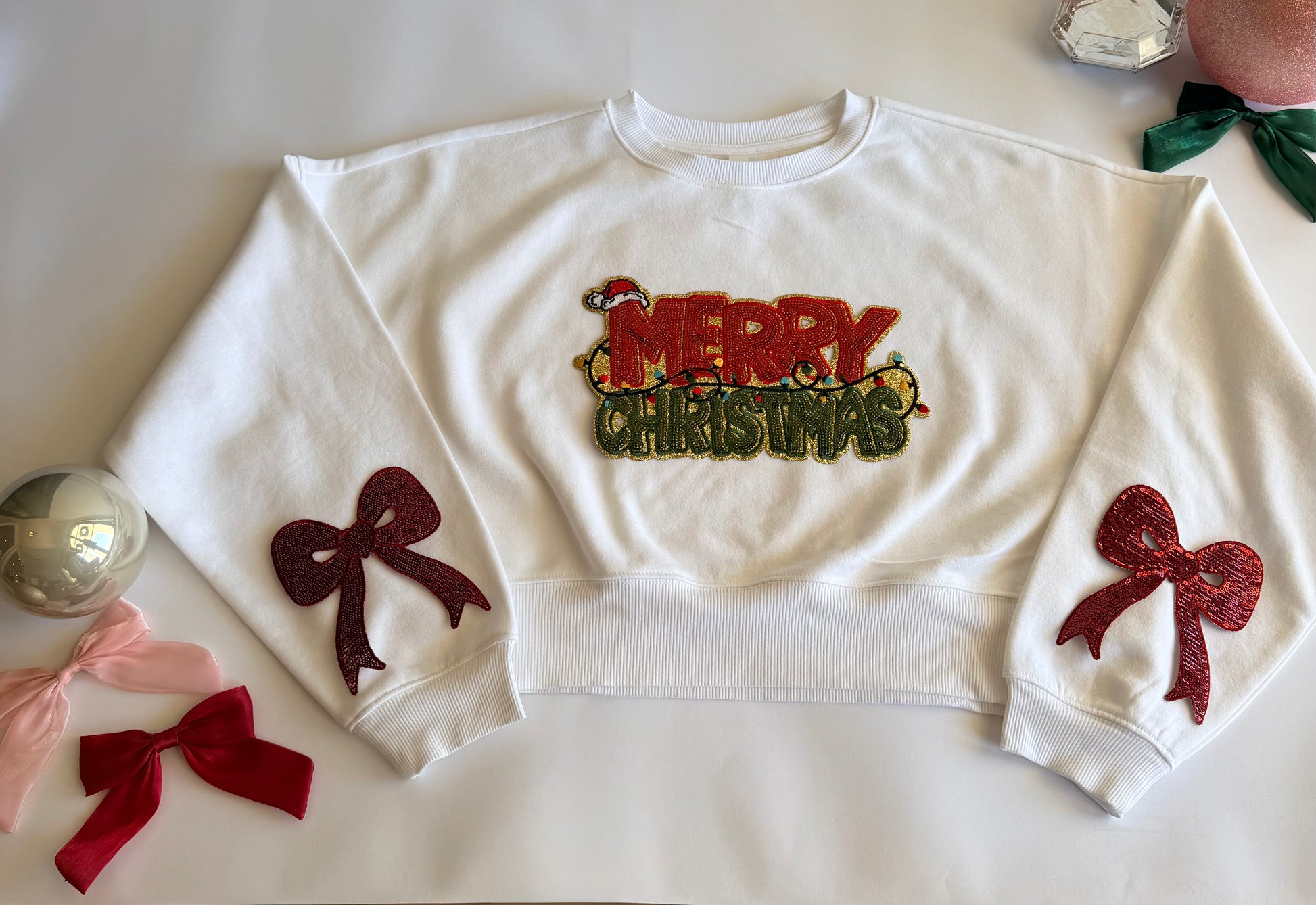 Adult Christmas Sweatshirt with Sequin Patch+ Bows