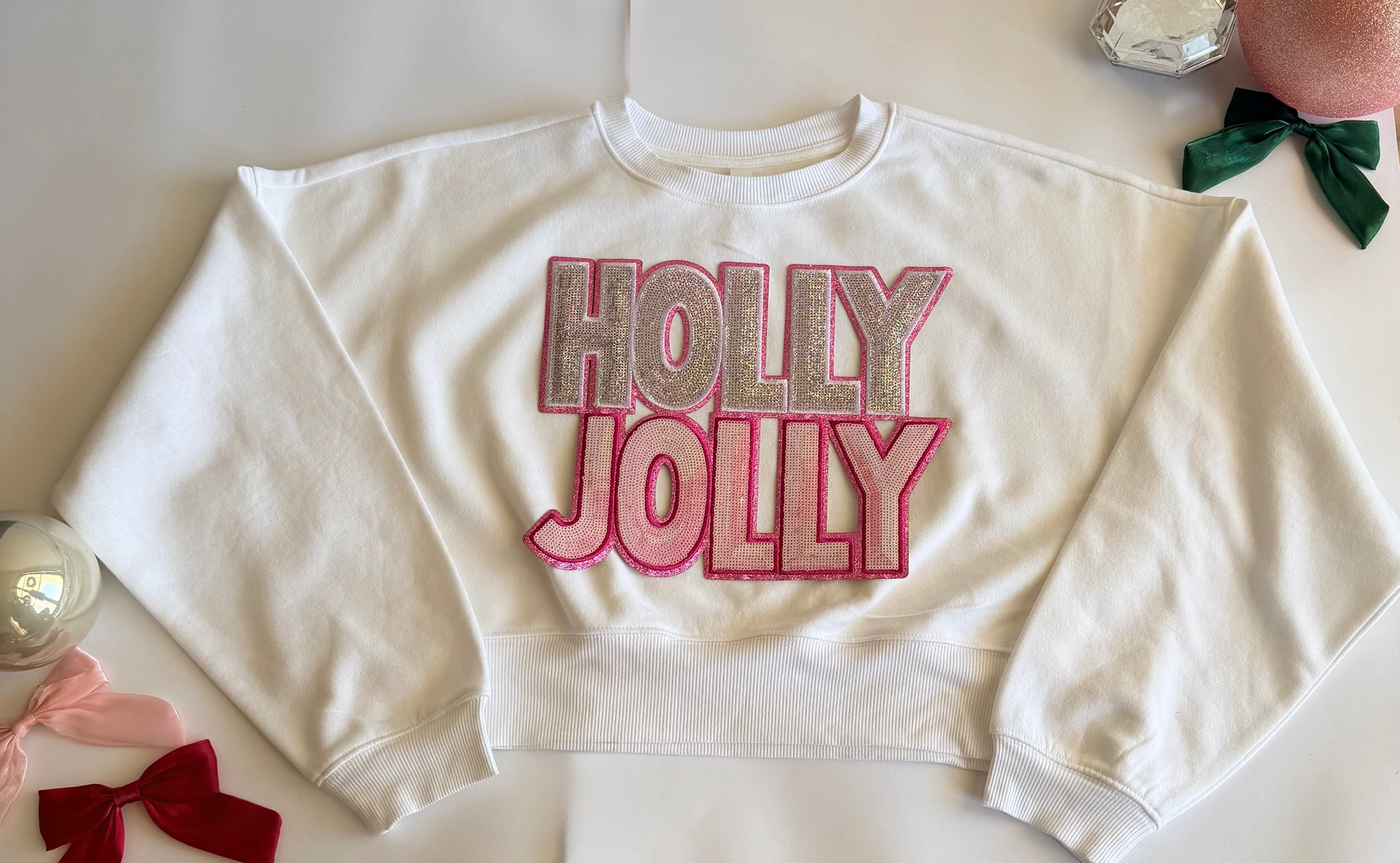 Adult Christmas Crop Sweatshirt with Single Christmas Sequin Patch